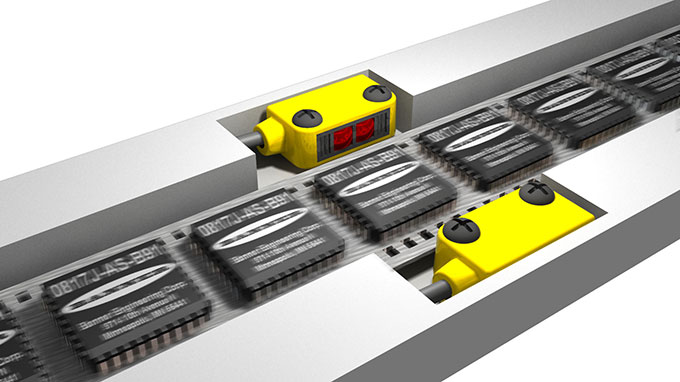 Integrated circuits are tiny silicone plates that can be anywhere from 2 to 7 square mm in size. These circuits, after the production is completed, get shipped out in mass quantities – making it vital that every circuit is tracked and counted with accuracy. Successfully detecting the presence of integrated circuit chips in a confined space is a challenge that requires powerful, accurate sensing in a miniature housing.