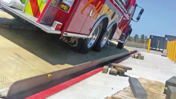 Though using a tilt table is a quasi-static test, it is much easier and less dangerous to conduct – and certainly much easier on the fire truck than driving around in a circle of a specified radius at a specified speed to see if you roll over.” Ferrara Fire Apparatus, a leading manufacturer of custom emergency response vehicles located in Holden, Louisiana, has been heavily involved in crash testing and safety analysis, and offers both electronic stability control systems and on-site tilt table testing for their vehicles. “Knowing that stability testing was coming with the new 1901 standard, Ferrara Fire Apparatus made the investment in a test facility at our factory, compliant with SAE 2180,” says Chris Ferrara, President of Ferrara Fire Apparatus.