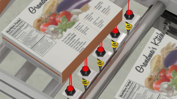 One of the challenges when detecting sealed food packages along a conveyor is the detection of different sizes and positions of packages. The best solution is to line up multiple sensors underneath the conveyor to ensure any and all packages are detected.
