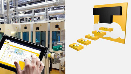 Simple access to machine data in the cloud from any PC or mobile device worldwide simplifies fault diagnostics and maintenance as well as condition monitoring for preventative maintenance. The cloud interface supplies a clear presentation of the states of sensors and other machine data in a browser application. These dashboards can be created by the user without any programming knowledge. Limit values such as temperature, pressure or vibration can be set easily and actions for limit violations defined. If necessary, the Turck Cloud can send an SMS or email directly.