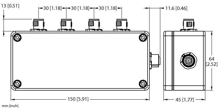 4-port, with M12 Female Connector for Supply Cable