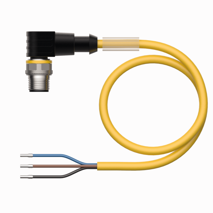 Order number: 6629748- Male M12, angled, 3-pin
