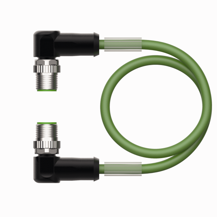 Cable for Industrial Ethernet, M12 male connector, D-coded, angled to M12 male connector, D-coded, angled, cable length: 2 m, jacket material: PUR, green |