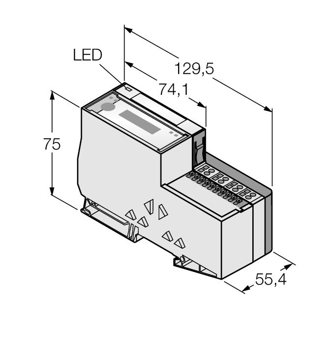 - LEDs for display of supply voltage, group and bus errors as well as status and diagnostics