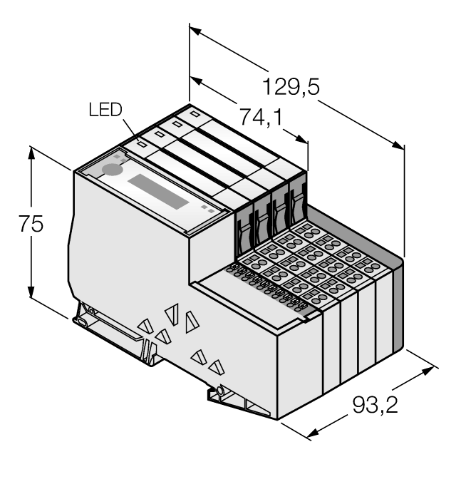 - LEDs for display of supply voltage, group and bus errors as well as status and diagnostics