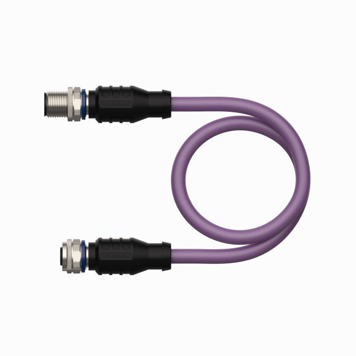 - M12 male connector, straight, reverse-keyed